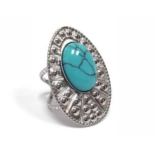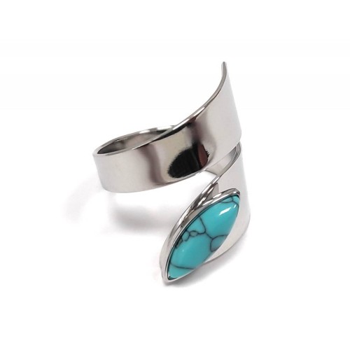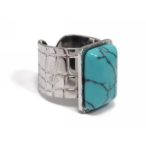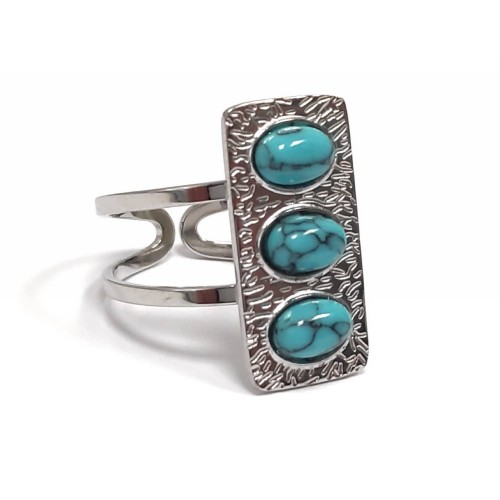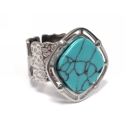 Δαχτυλίδι Πέτρα 316L, με τυρκουάζ σε χρώμα Ασημί..