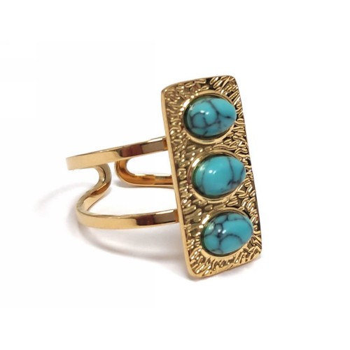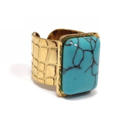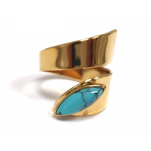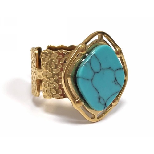 Δαχτυλίδι Πέτρα 316L, με τυρκουάζ σε χρώμα Χρυσαφί..