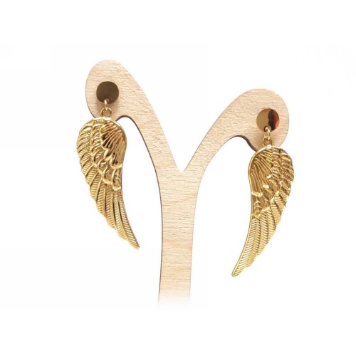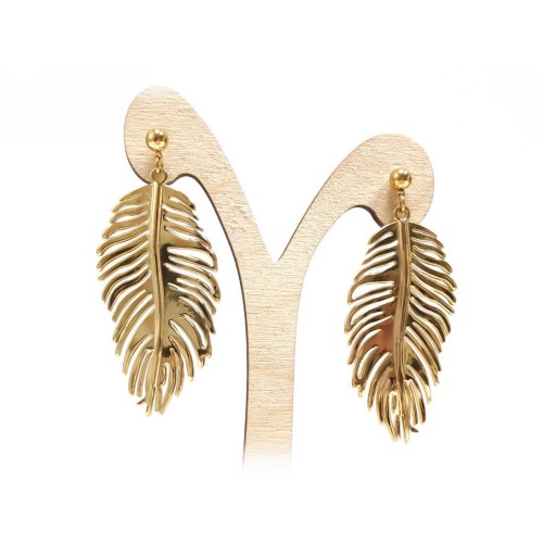 Σκουλαρίκια Ατσάλι 316L, φτερό σε χρώμα Χρυσαφί..