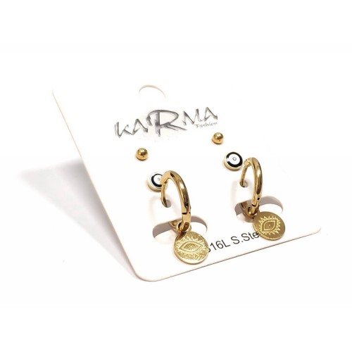 Σκουλαρίκια Ατσάλι 316L, 3 ζευγάρια (κρίκος μάτι, μάτι και μπίλια) σε χρώμα Χρυσαφί, Διάμετρος 1cm..