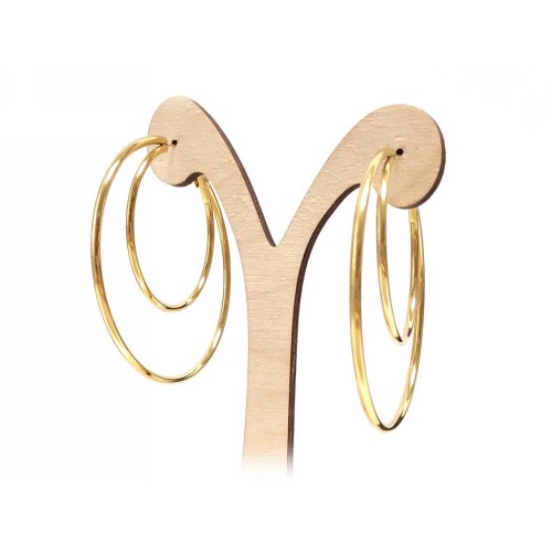 Σκουλαρίκια Ατσάλι 316L, διπλός κρίκος σε χρώμα Χρυσαφί, Διάμετρος 6cm..