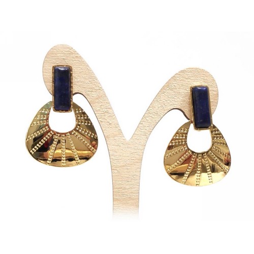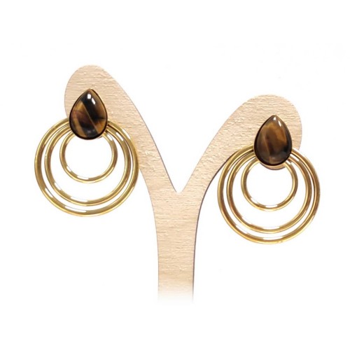 Σκουλαρίκια Πέτρα 316L, κρίκος με μάτι τίγρης σε χρώμα Χρυσαφί..
