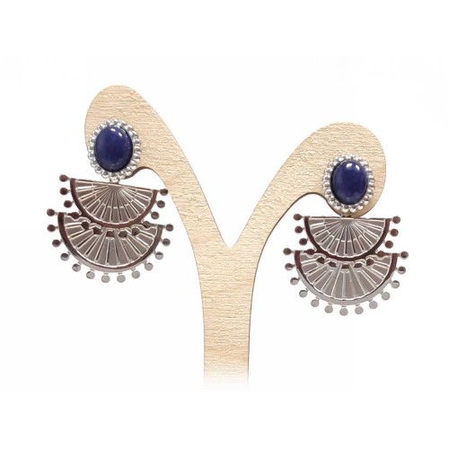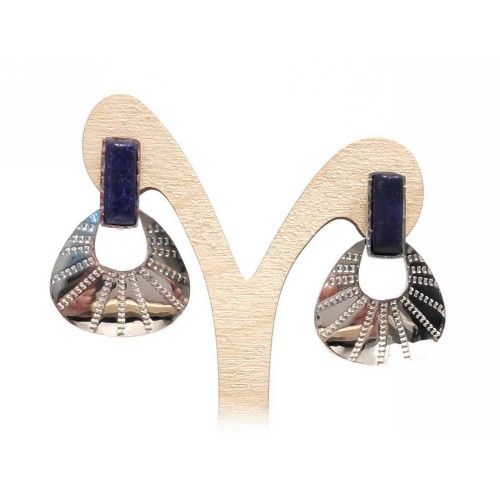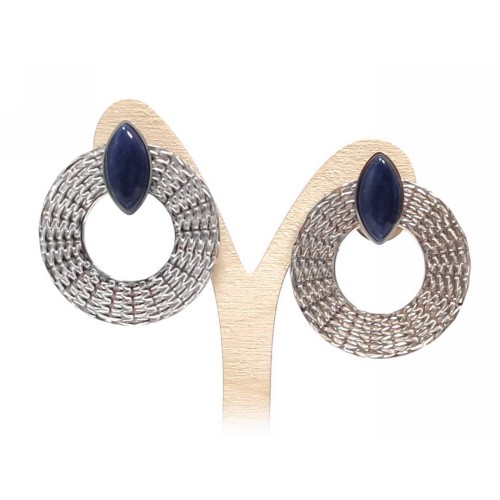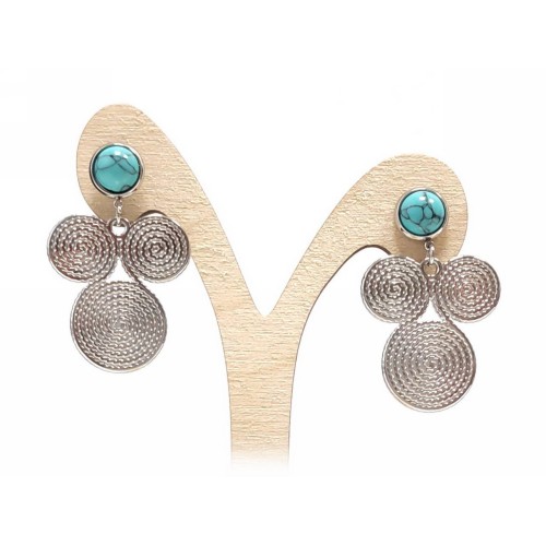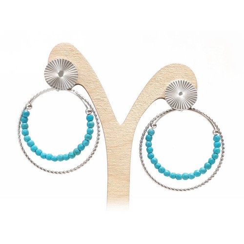 Σκουλαρίκια Πέτρα 316L, κρίκος με τυρκουάζ σε χρώμα Ασημί, Διάμετρος 4cm..