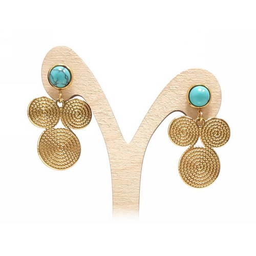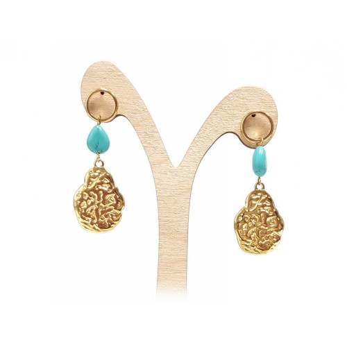 Σκουλαρίκια Πέτρα 316L, κρίκος με τυρκουάζ σε χρώμα Χρυσαφί, Διάμετρος 4cm..