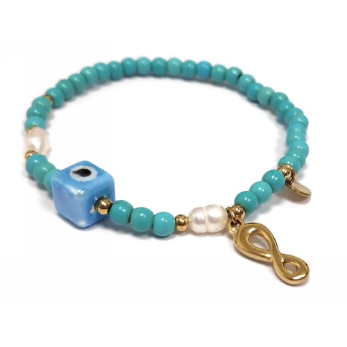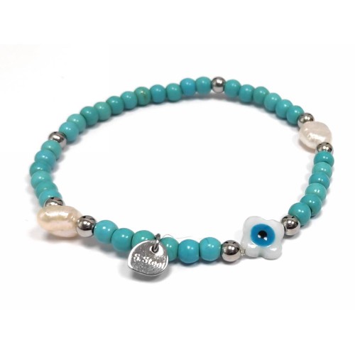 Βραχιόλι Πέτρα 316L, με τυρκουάζ και μαργαριτάρι σε χρώμα Ασημί..