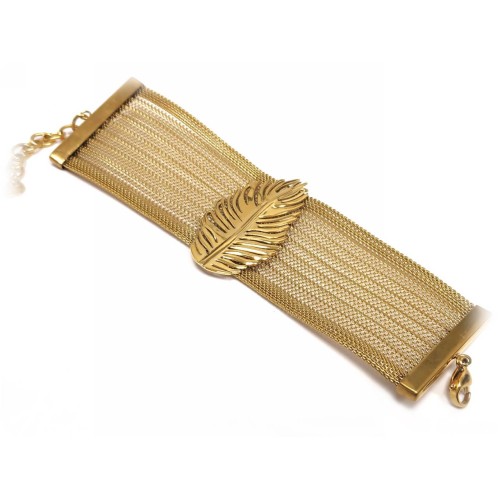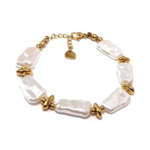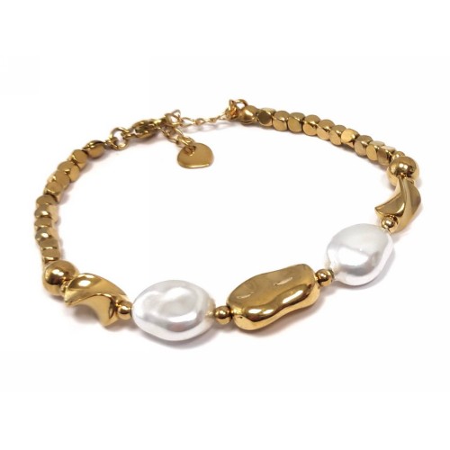 Βραχιόλι Ατσάλι 316L, αλυσίδα με μαργαριτάρι σε χρώμα Χρυσαφί..