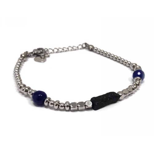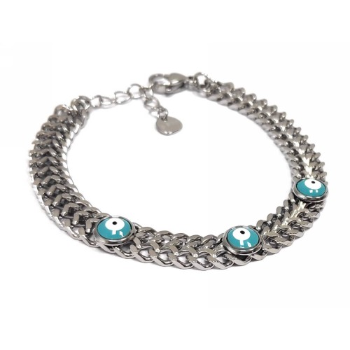 Βραχιόλι Ατσάλι 316L, αλυσίδα με μάτι και τυρκουάζ σε χρώμα Ασημί..