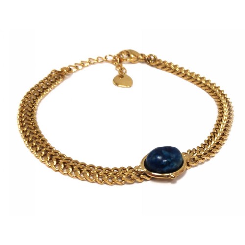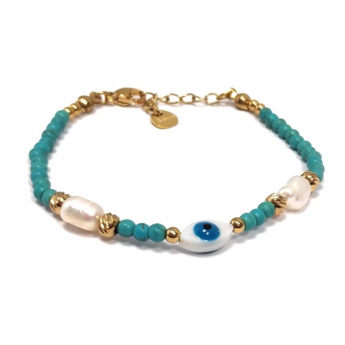 Βραχιόλι Ατσάλι 316L, αλυσίδα με μάτι και τυρκουάζ σε χρώμα Χρυσαφί..