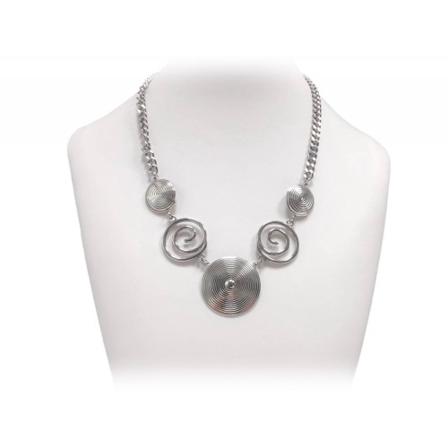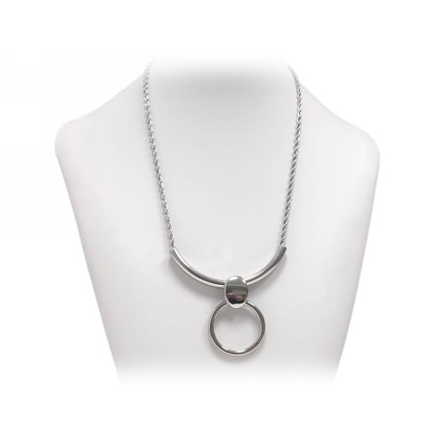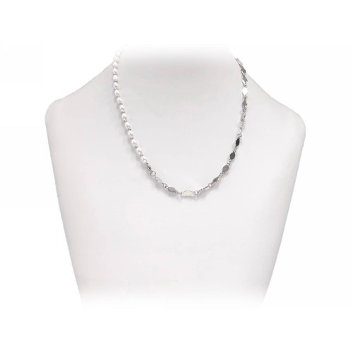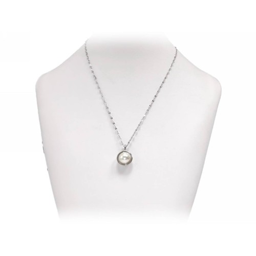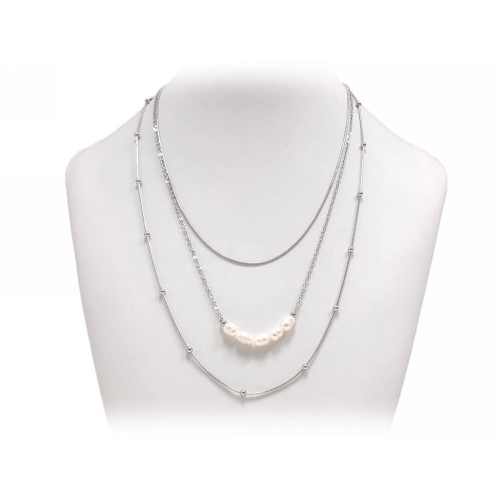 Κολιέ Ατσάλι 316L, τριπλή αλυσίδα με μαργαριτάρι σε χρώμα Ασημί..