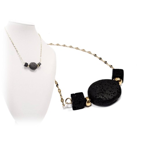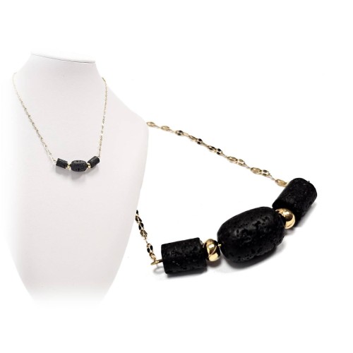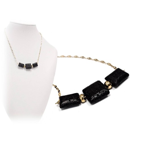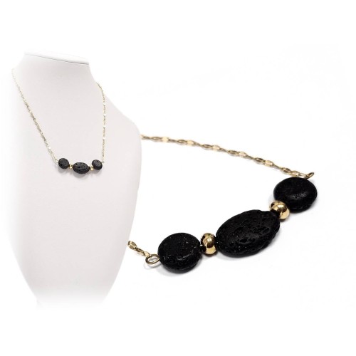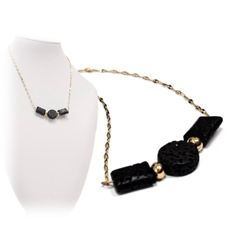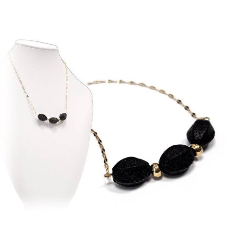 Κολιέ Πέτρα λάβα, ατσάλι σε χρώμα Χρυσαφί..