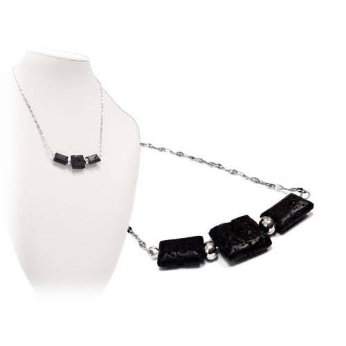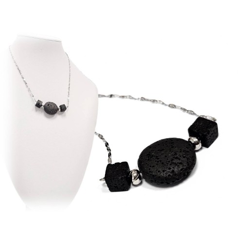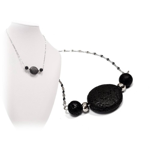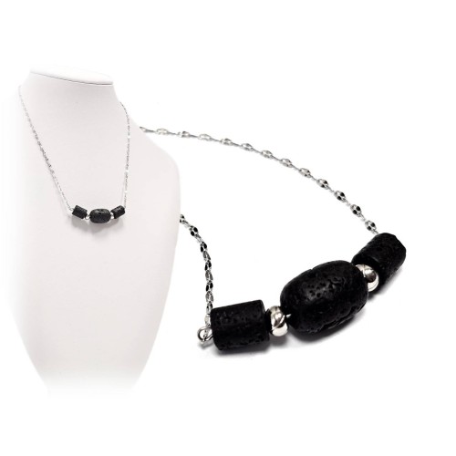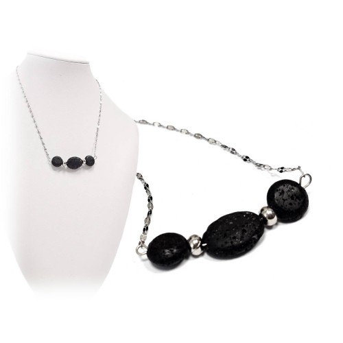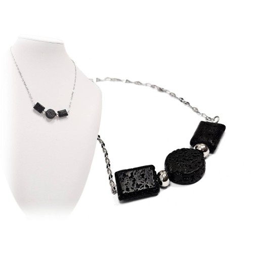 Κολιέ Πέτρα λάβα, ατσάλι σε χρώμα Ασημί..