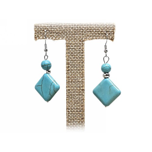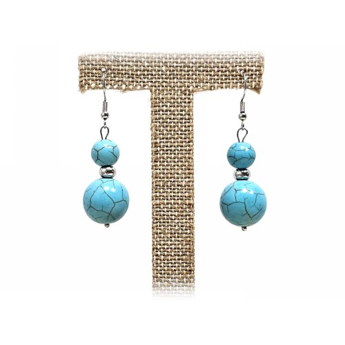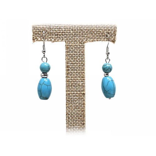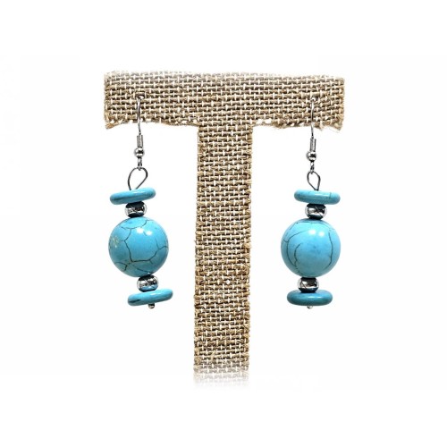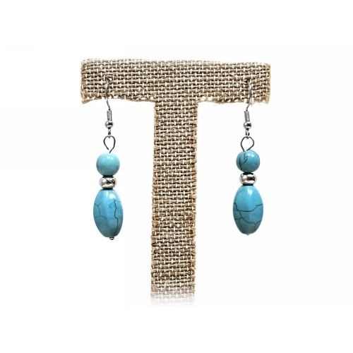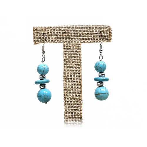 Σκουλαρίκια Πέτρα τυρκουάζ, ατσάλι σε χρώμα Ασημί..