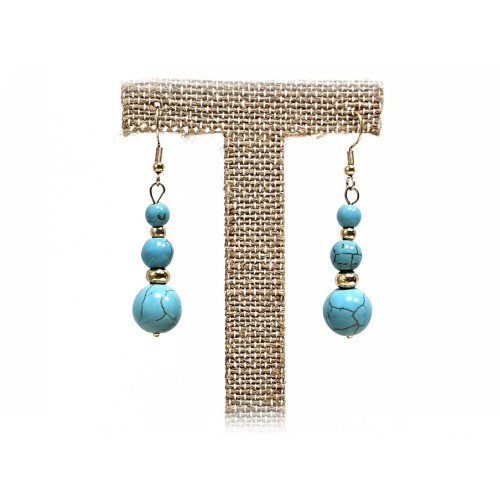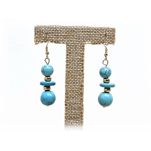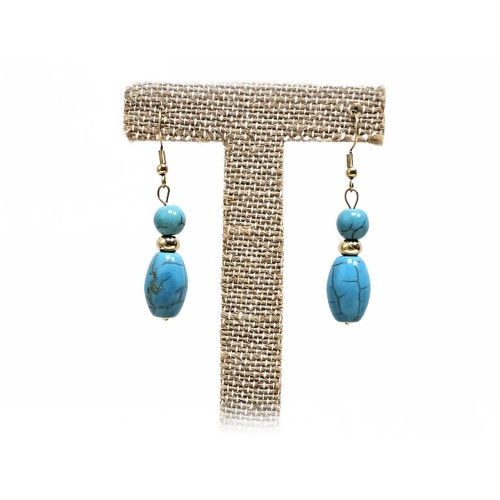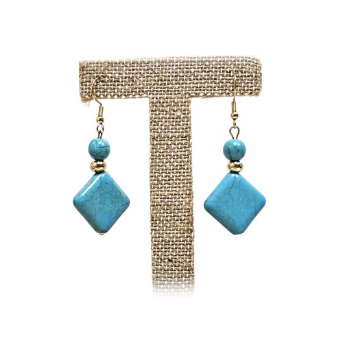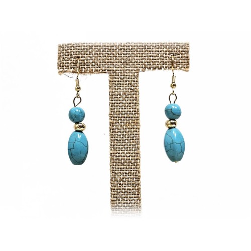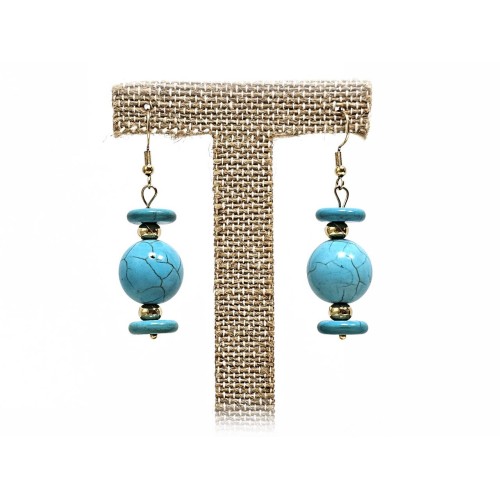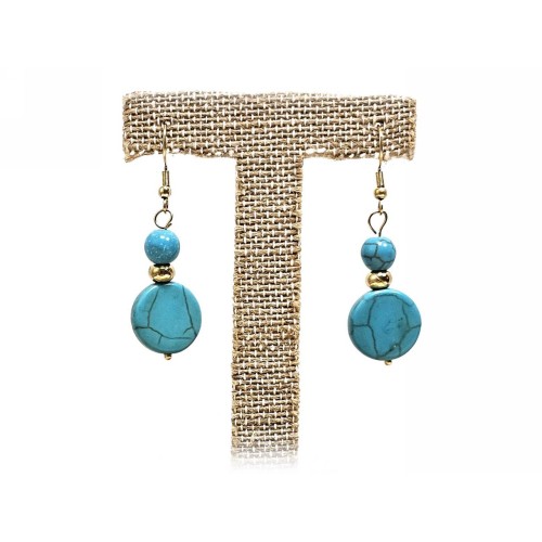 Σκουλαρίκια Πέτρα τυρκουάζ, ατσάλι σε χρώμα Χρυσαφί..