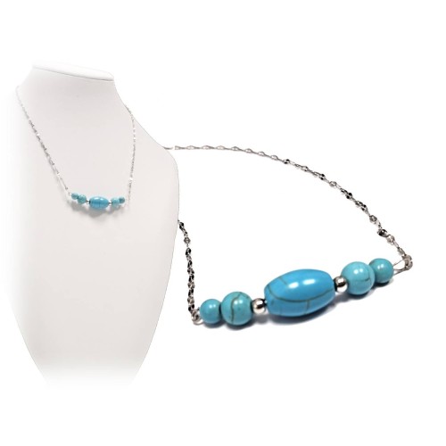 Κολιέ Πέτρα τυρκουάζ, ατσάλι σε χρώμα Ασημί..