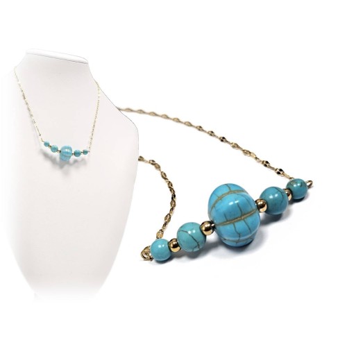Κολιέ Πέτρα τυρκουάζ, ατσάλι σε χρώμα Χρυσαφί..