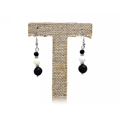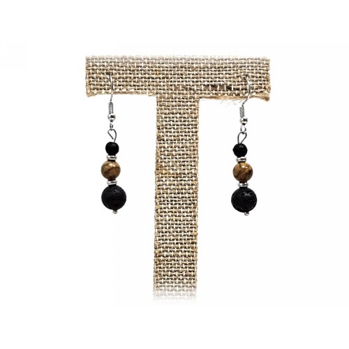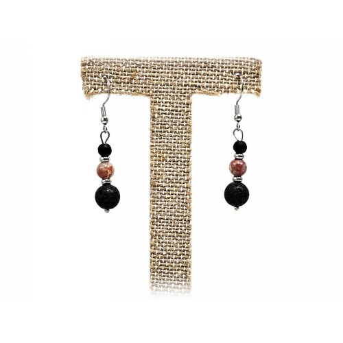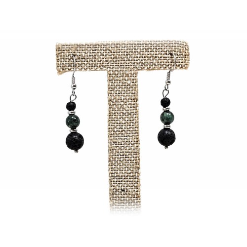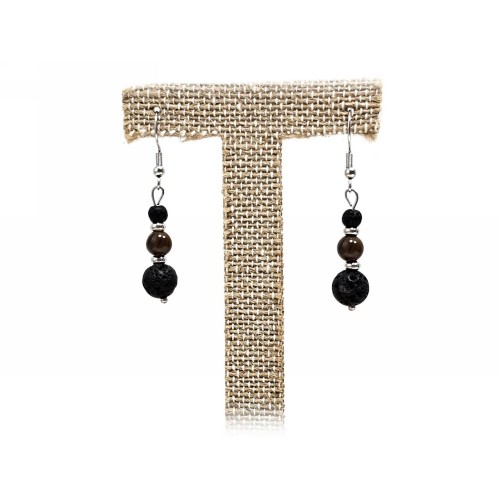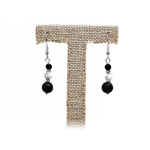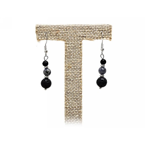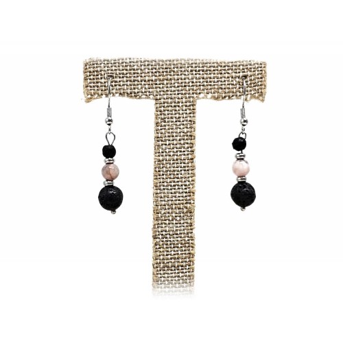 Σκουλαρίκια Πέτρα ημιπολύτιμη και λάβα, ατσάλι σε χρώμα Ασημί..