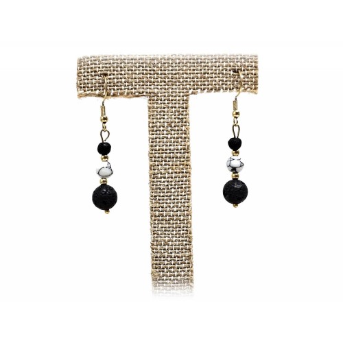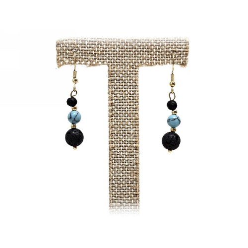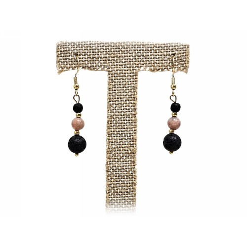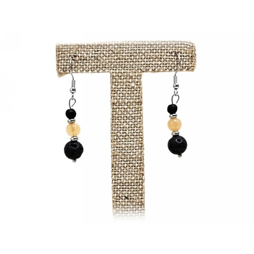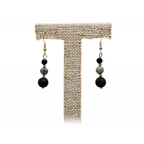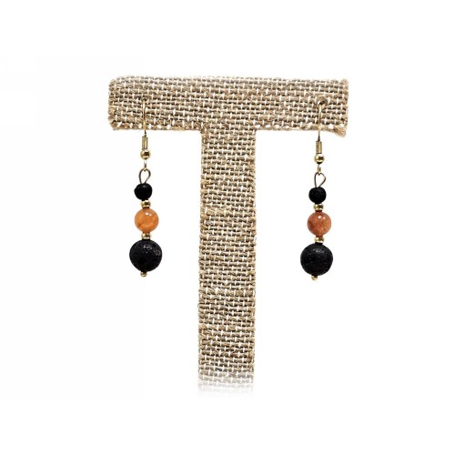 Σκουλαρίκια Πέτρα ημιπολύτιμη και λάβα, ατσάλι σε χρώμα Χρυσαφί..