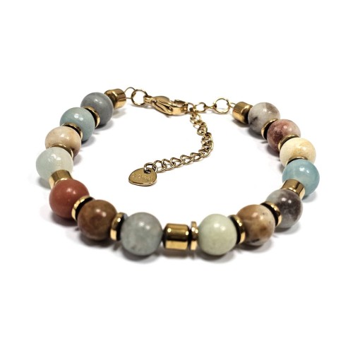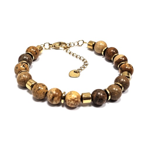 Βραχιόλι Πέτρα με ημιπολύτιμες πέτρες και στοιχεία από αιματίτη σε χρώμα Χρυσαφί..