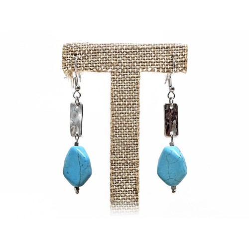 Σκουλαρίκια Πέτρα λάβα, ατσάλι, 8 σχέδια από 3 ζευγ. σε χρώμα Ασημί Σταντ(24Ζεγ.)..