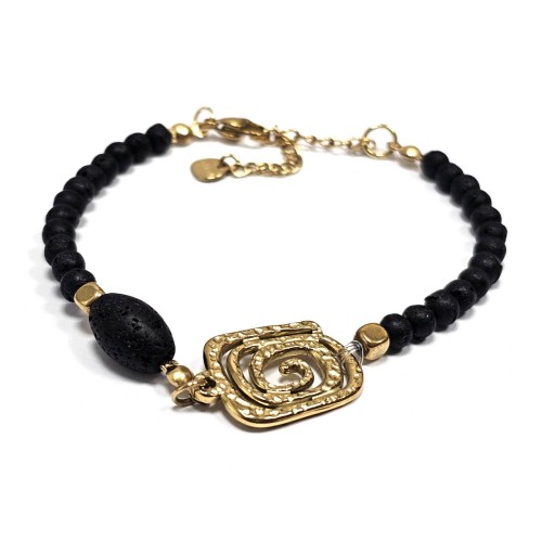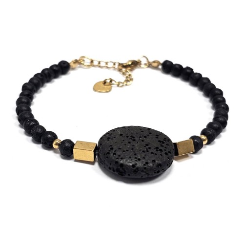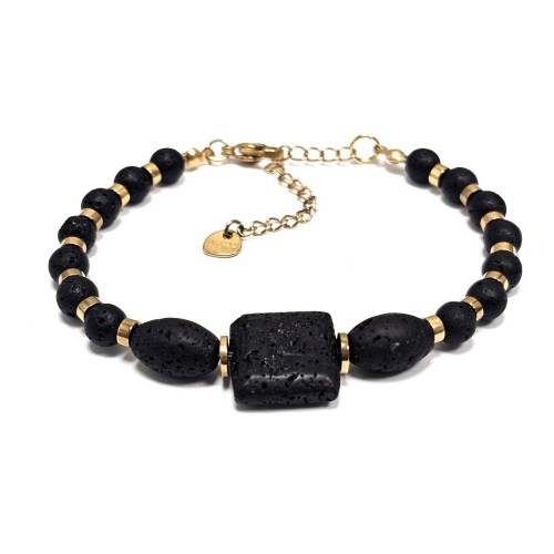 Βραχιόλι Πέτρα με λάβα και στοιχεία από αιματίτη σε χρώμα Χρυσαφί..