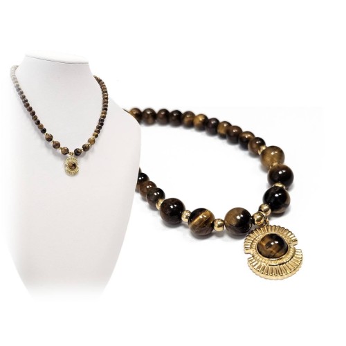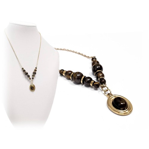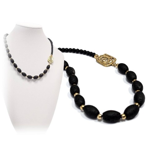 Κολιέ Πέτρα με λάβα και στοιχεία από αιματίτη σε χρώμα Χρυσαφί..