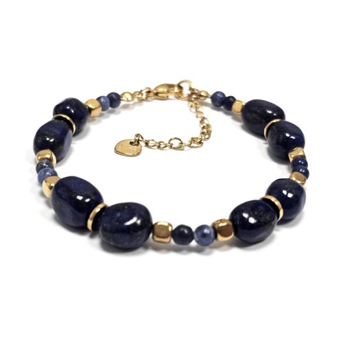 Βραχιόλι Πέτρα με Lapis και στοιχεία από αιματίτη σε χρώμα Χρυσαφί..