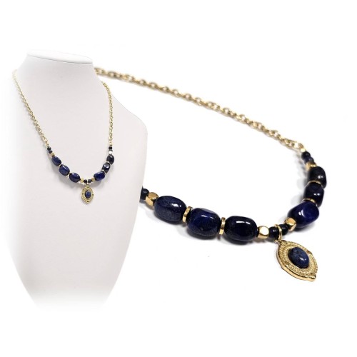 Κολιέ Πέτρα με Lapis και στοιχεία από αιματίτη σε χρώμα Χρυσαφί..