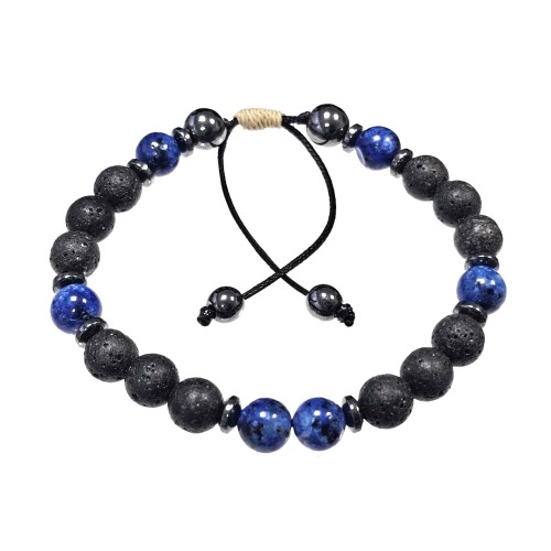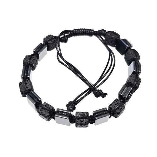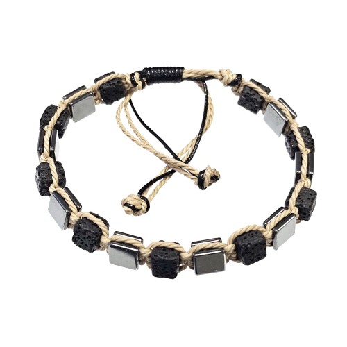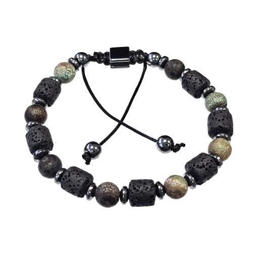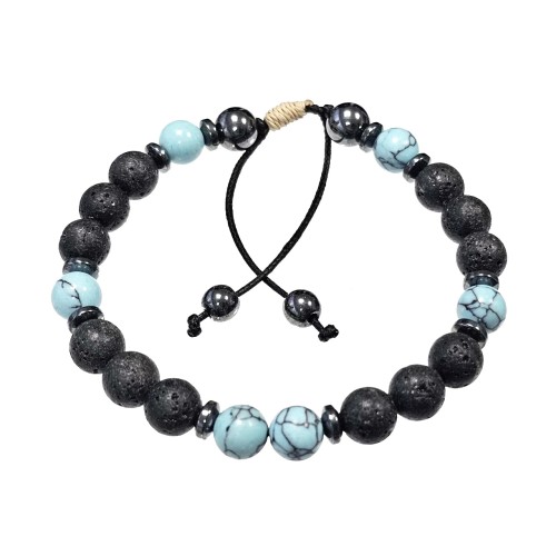 Αντρικό Βραχιόλι Πέτρα ελαστικό και μακραμέ, λάβα και τυρκουάζ, 4-6-8mm, αντρικό και γυναικείο 24 σχ..