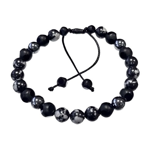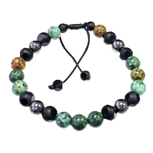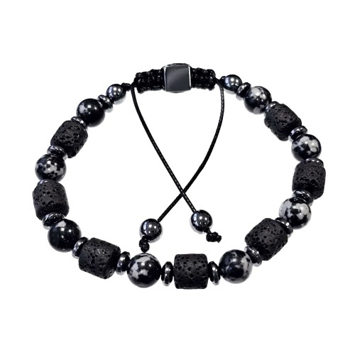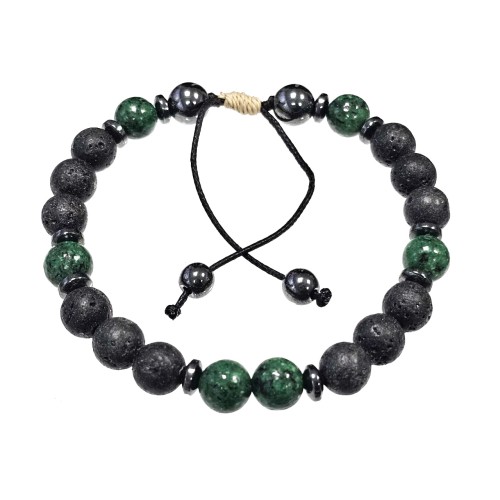 Αντρικό Βραχιόλι Πέτρα μακραμέ 8mm, με ημιπολύτιμες πέτρες και στοιχεία από αιματίτη..