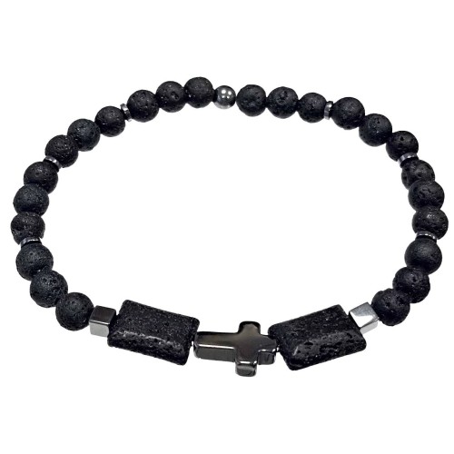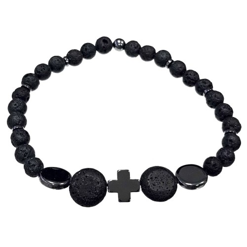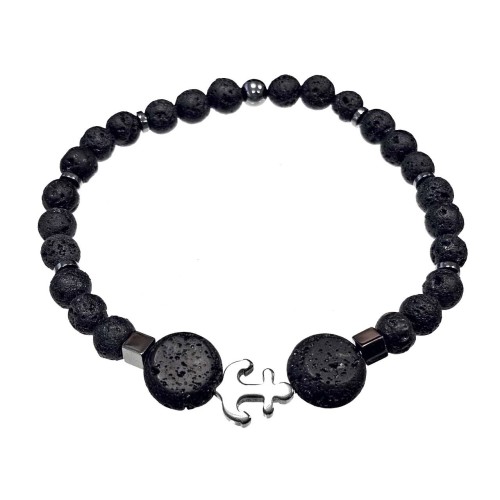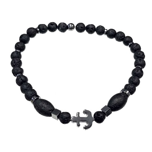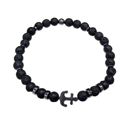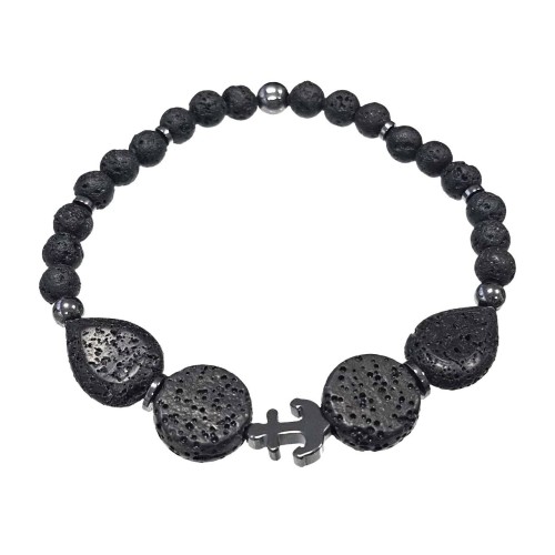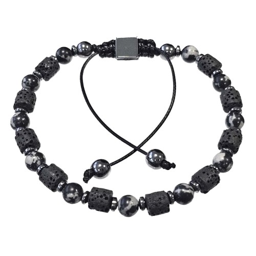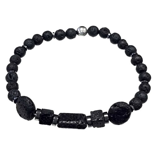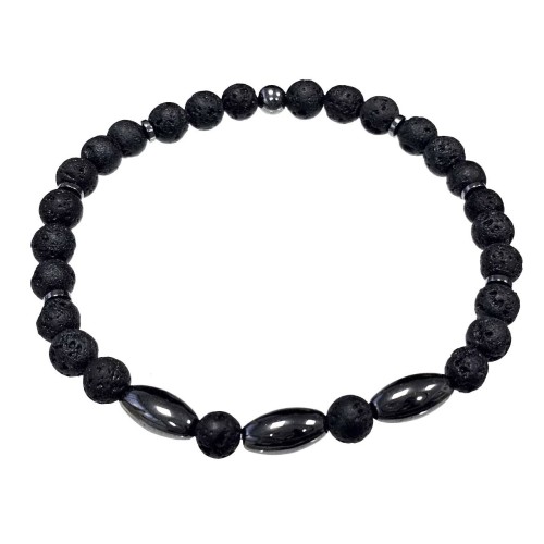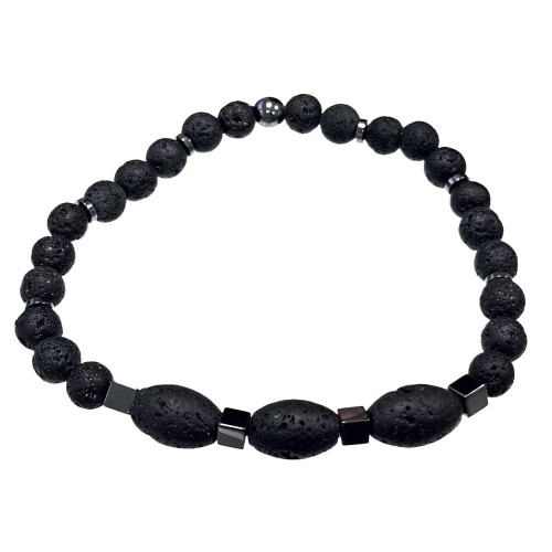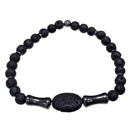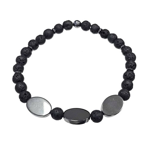 Αντρικό Βραχιόλι Πέτρα ελαστικό, με λάβα και στοιχεία από αιματίτη..