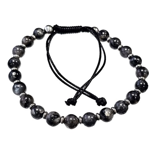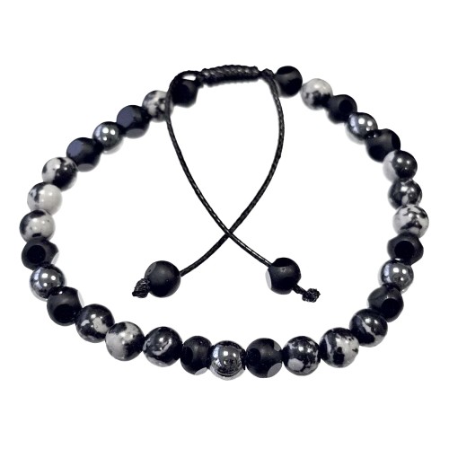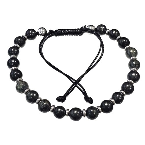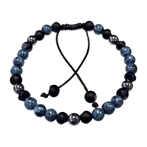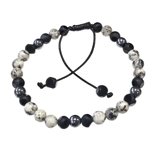 Αντρικό Βραχιόλι Πέτρα μακραμέ 6mm, με ημιπολύτιμες πέτρες και στοιχεία από αιματίτη..