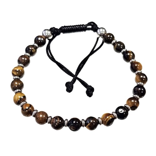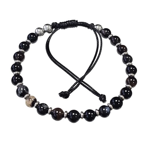 Αντρικό Βραχιόλι Πέτρα μακραμέ 6mm, με ημιπολύτιμες πέτρες και στοιχεία από ατσάλι..