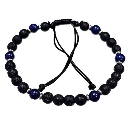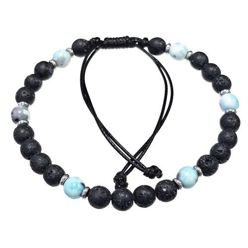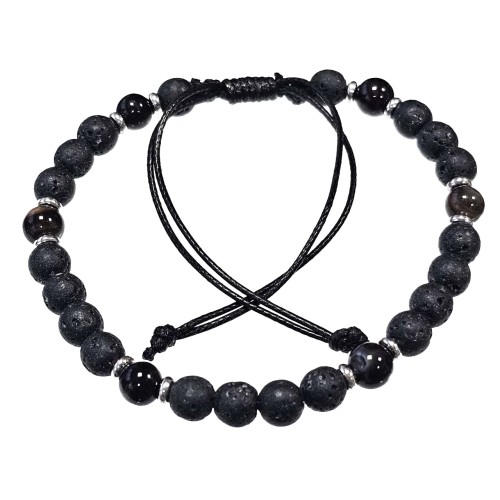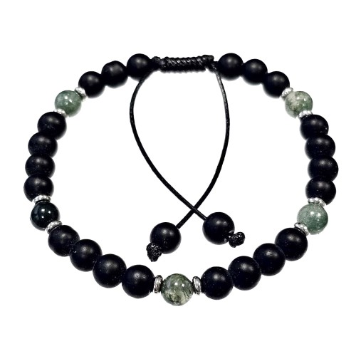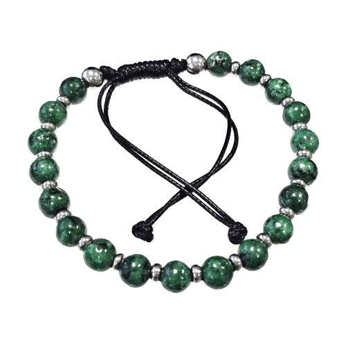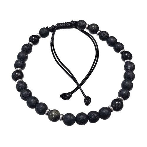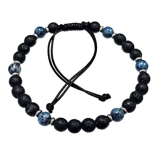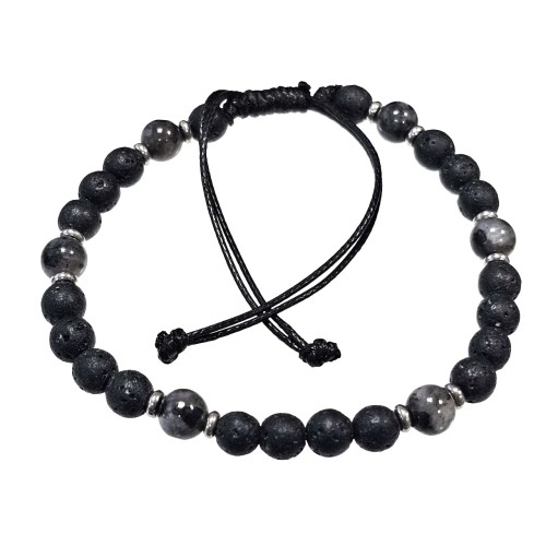 Αντρικό Βραχιόλι Πέτρα μακραμέ 6mm, με ημιπολύτιμες πέτρες και στοιχεία από ατσάλι και χρώμα Ασημί..