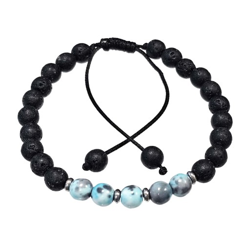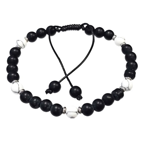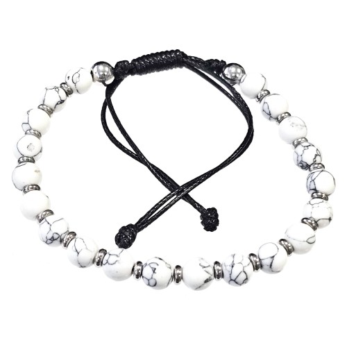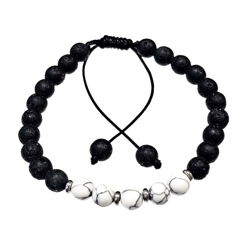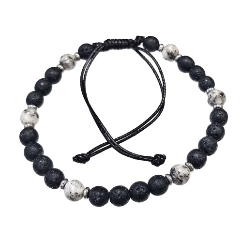 Βραχιόλι Πέτρα μακραμέ 6mm, με ημιπολύτιμες πέτρες και στοιχεία από ατσάλι και χρώμα Ασημί..