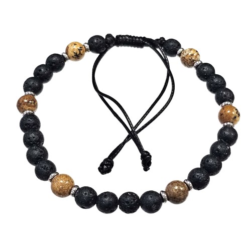Αντρικό Βραχιόλι Πέτρα μακραμέ 6mm, με ημιπολύτιμες πέτρες και στοιχεία από ατσάλι και χρώμα Χρυσαφί..