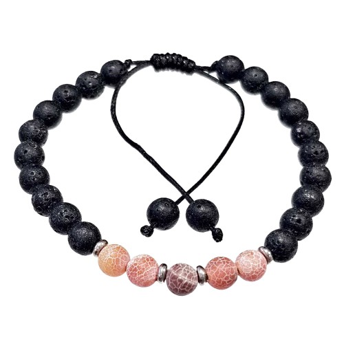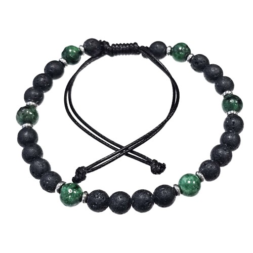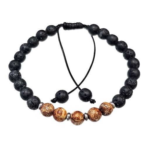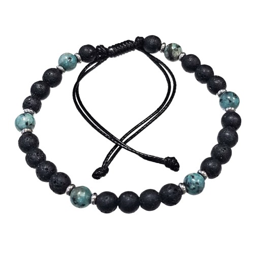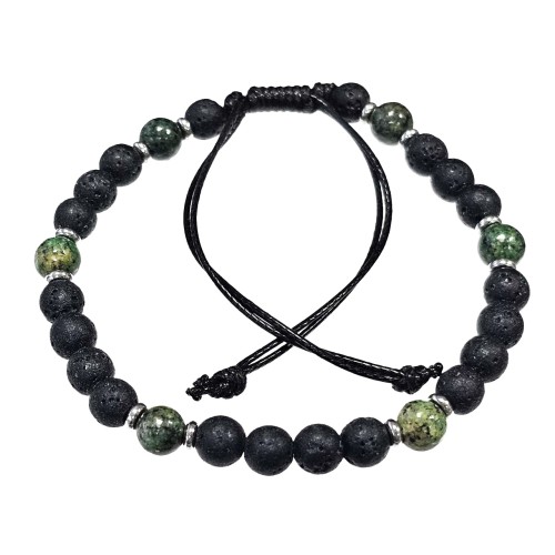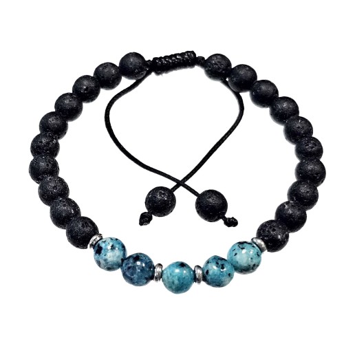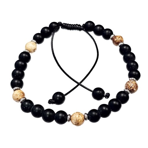 Αντρικό Βραχιόλι Πέτρα μακραμέ 6mm, με ημιπολύτιμες πέτρες και στοιχεία από ατσάλι..