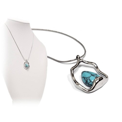 Κολιέ Πέτρα 316L, αλυσίδα με τυρκουάζ και σπείρα σε χρώμα Ασημί..