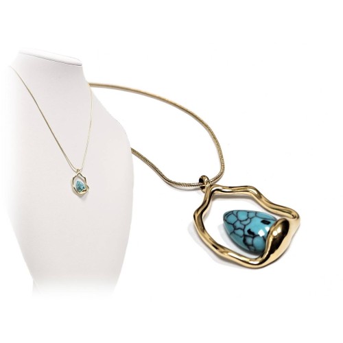 Κολιέ Πέτρα 316L, αλυσίδα με τυρκουάζ σε χρώμα Χρυσαφί..
