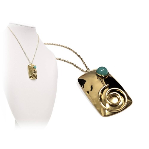Κολιέ Πέτρα 316L, αλυσίδα με τυρκουάζ και σπείρα σε χρώμα Χρυσαφί..