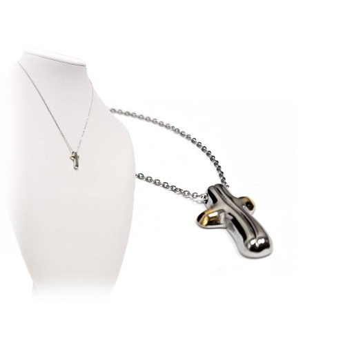 Κολιέ Ατσάλι 316L, αλυσίδα με σταυρό σε χρώμα Ασημί και χρώμα Χρυσαφί..