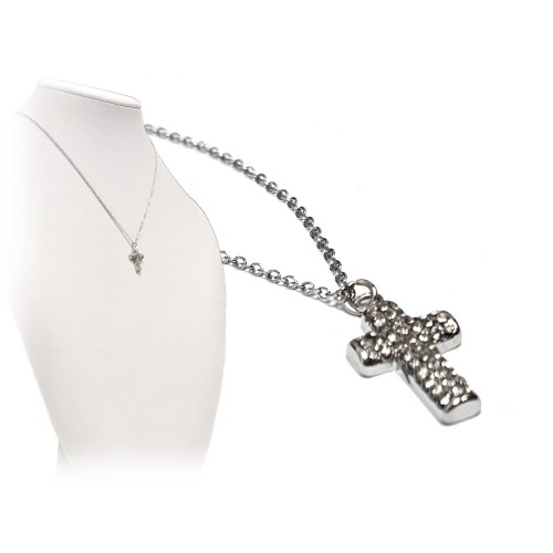 Κολιέ Ατσάλι 316L, αλυσίδα με σταυρό και στρας σε χρώμα Ασημί..
