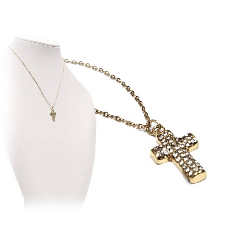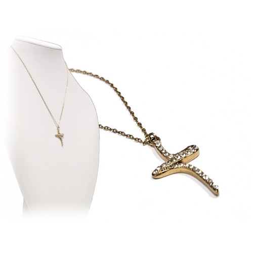 Κολιέ Ατσάλι 316L, αλυσίδα με σταυρό και στρας σε χρώμα Χρυσαφί..