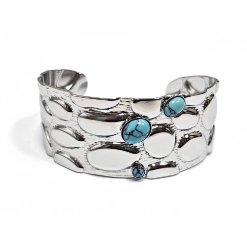 Βραχιόλι Πέτρα 316L, σταθερό με τυρκουάζ σε χρώμα Ασημί..