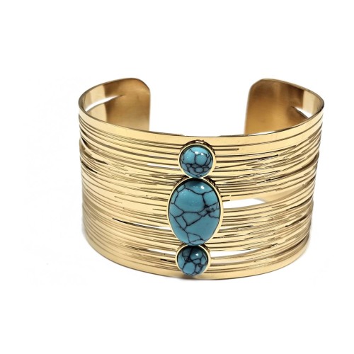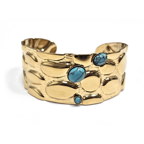Βραχιόλι Πέτρα 316L, σταθερό με τυρκουάζ σε χρώμα Χρυσαφί..