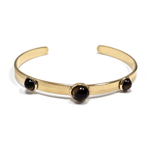 Βραχιόλι Πέτρα 316L, σταθερό με μάτι τίγρης σε χρώμα Χρυσαφί..