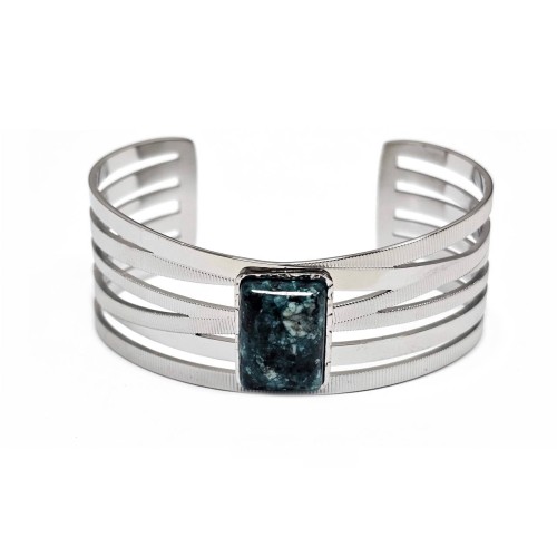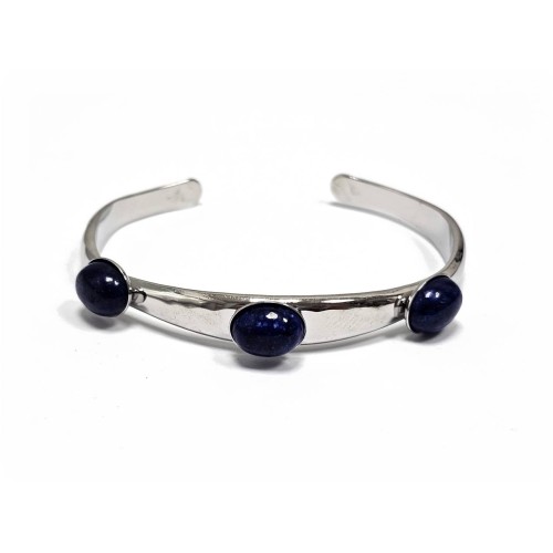 Βραχιόλι Πέτρα 316L, σταθερό με Lapis σε χρώμα Ασημί..
