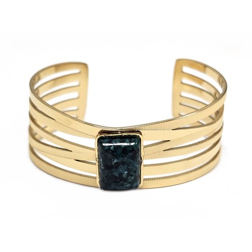 Βραχιόλι Πέτρα 316L, σταθερό με Lapis σε χρώμα Χρυσαφί..