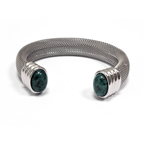 Βραχιόλι Πέτρα 316L, σταθερό με μαλαχίτη σε χρώμα Ασημί..