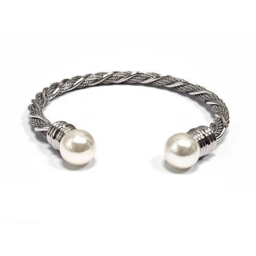 Βραχιόλι Ατσάλι 316L, σταθερό με πέρλα σε χρώμα Ασημί..