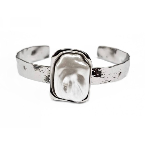 Βραχιόλι Ατσάλι 316L, σταθερό με μαργαριτάρι σε χρώμα Ασημί..